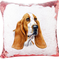 Basset Hound Dog Portrait on a Sequin Pillow
