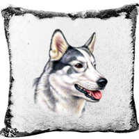 Mermaid sequin Pillow with Siberian Huskies